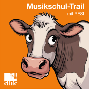 Flyer_Musikschul-Trail Musikschule Region Sins hat den Musikschule-Trail mit RESI eröffnet. RESI ist die musikalische Kuh, welche die Teilnehmenden auf dem Trail begleitet. Der Trail hat 9 Posten und ist bis
